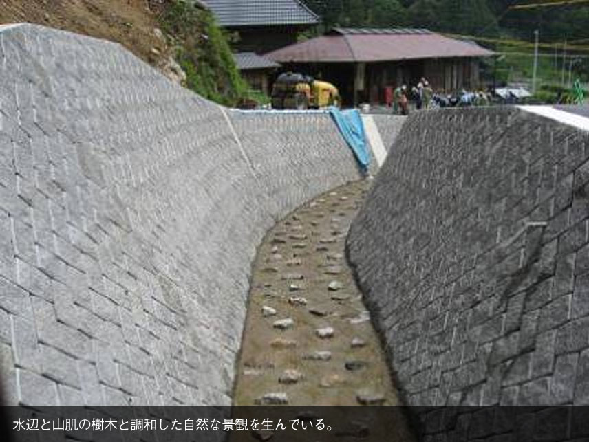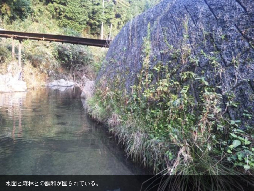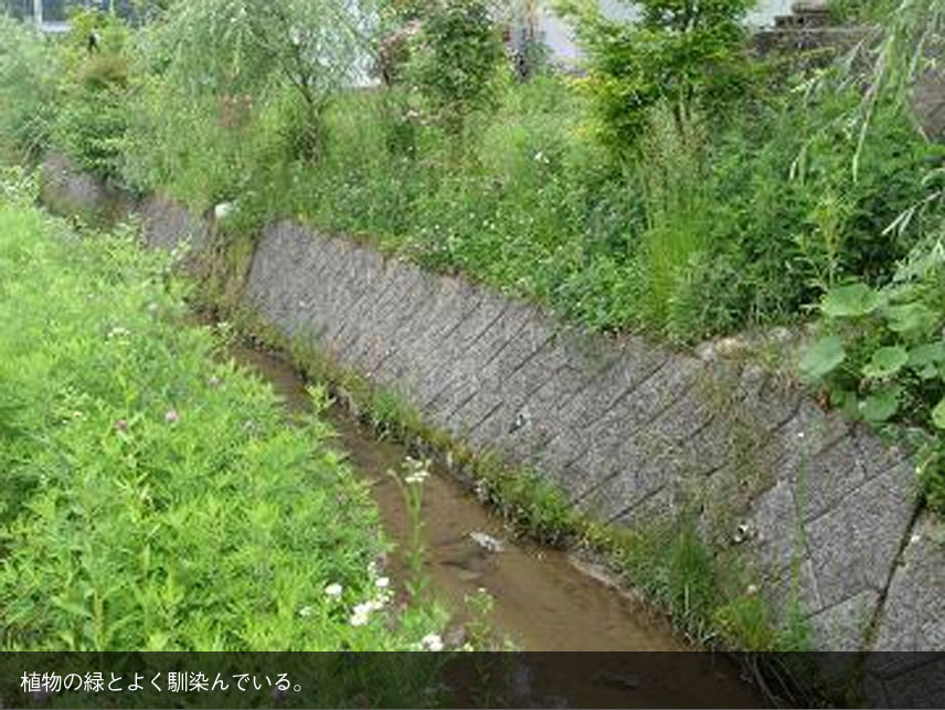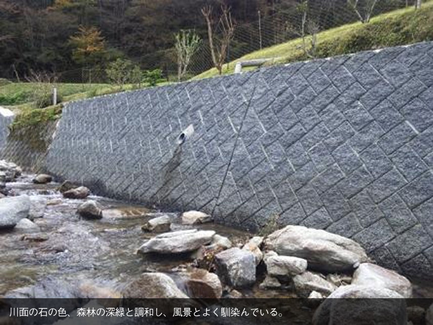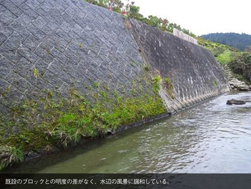 コンクリート系護岸の場合、素材(ブロック)に適度なテクスチャーを持たせることが求められています。