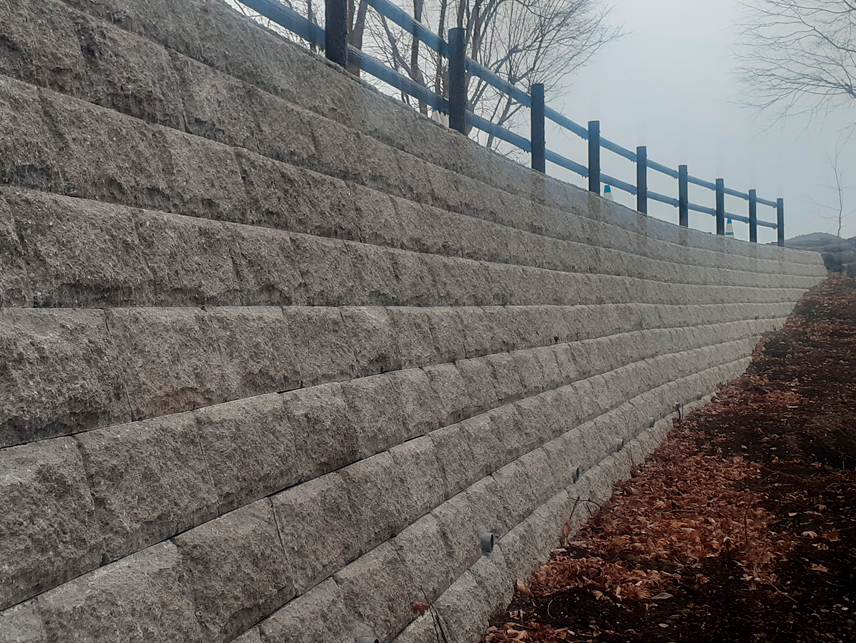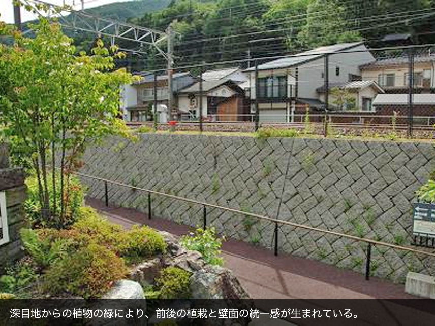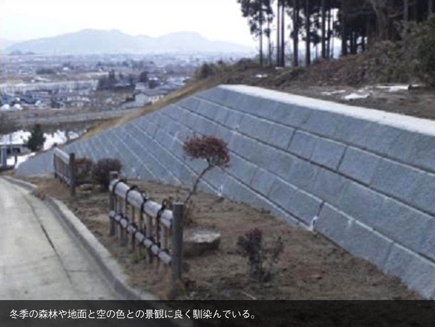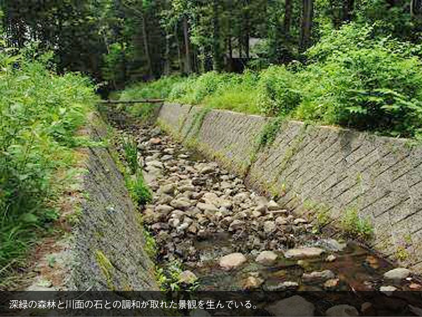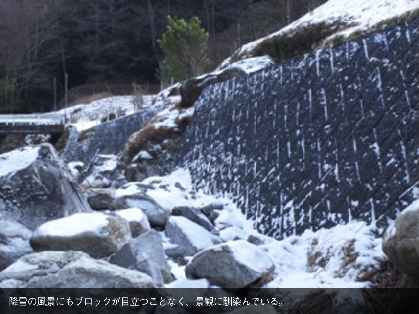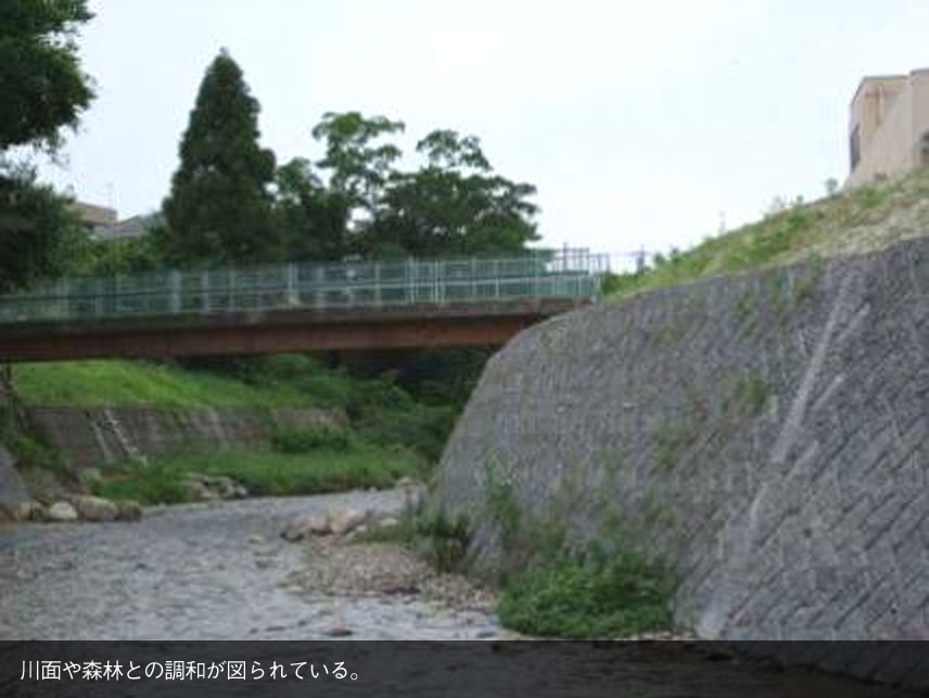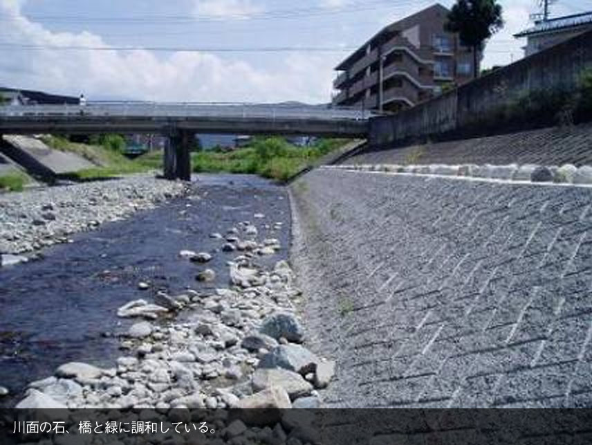 護岸に用いるブロックは、形やサイズ、積み方、目地などの景観パターンが、周辺の景観やその場の特性と調和していることが求められています。 スプリットンブロックは、国土交通省が実施した印象調査結果の「間知石積み風」に分類され、選好性が高い結果が得られています。このことからも、スプリットンブロックを用いた護岸は周辺環境と調和しているといえます。